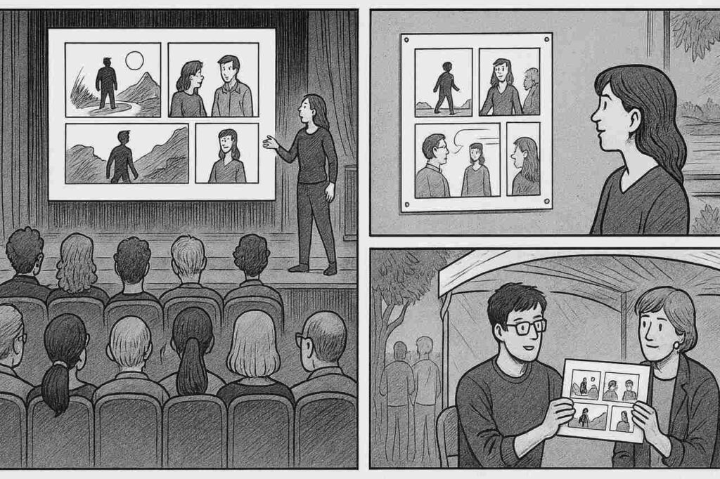 Narracja wizualna – czyli sposób opowiadania historii za pomocą kolejnych kadrów – ma dodatkową przewagę. Uporządkowany ciąg obrazów ułatwia śledzenie treści i pozwala lepiej zrozumieć zależności między poszczególnymi elementami. Tego typu narracja nie tylko podaje informacje, ale także podsuwa interpretacje, podkreśla to, co najważniejsze, i nadaje rytm przekazowi.
