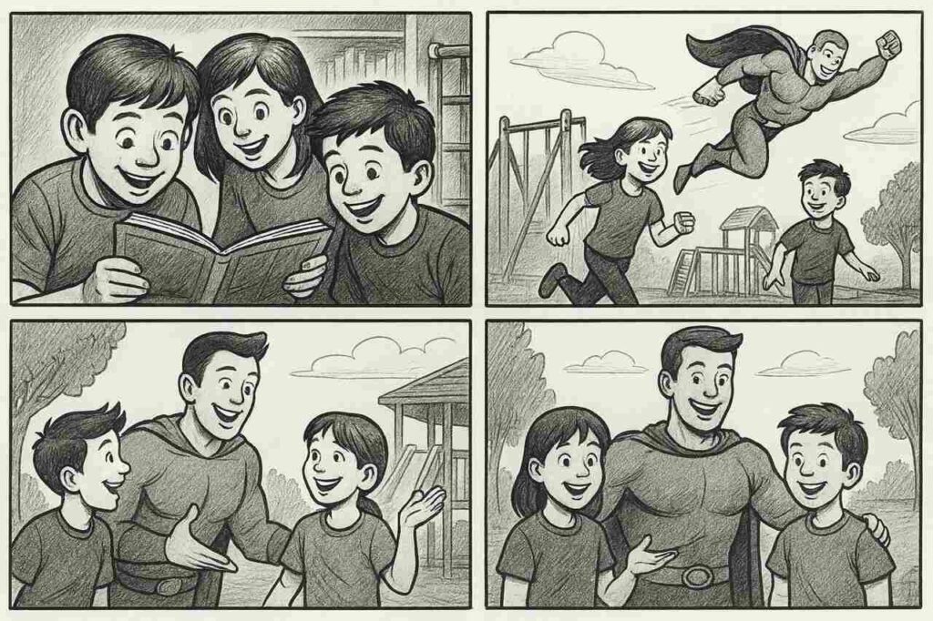 Komiks to sztuka opowiadania obrazami. Każdy kolejny obraz rozwija historię i prowadzi odbiorcę od wprowadzenia, przez rozwój akcji, aż do zakończenia.